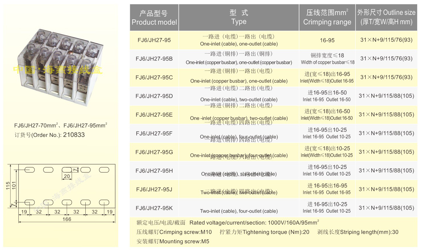 產品分類:FJ6/JH27系列大電流接線端子大電流分線端子105-107