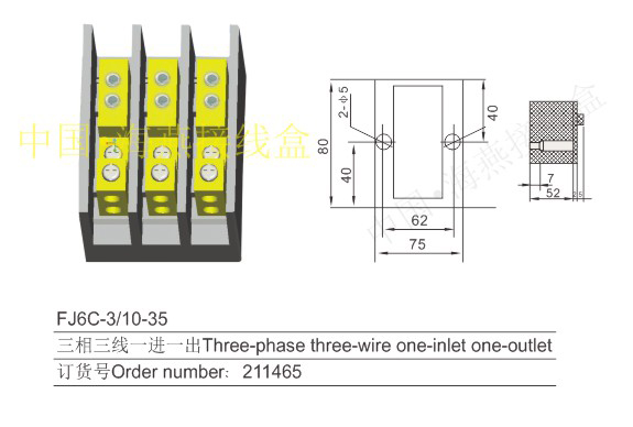 英文名稱:Three-phase three-wire series heavy current terminal blocks for measuring box (hole insertion type)