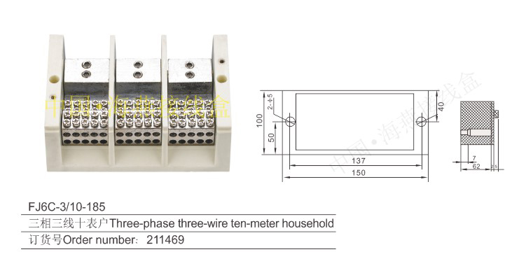 英文名稱:Three-phase three-wire series heavy current terminal blocks for measuring box (hole insertion type)