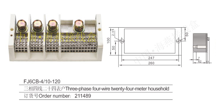 英文名稱:Three-phase four-wire series heavy current terminal blocks for measuring box (hole insertion type)