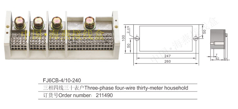 英文名稱:Three-phase four-wire series heavy current terminal blocks for measuring box (hole insertion type)