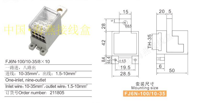 產(chǎn)品分類:FJ6N-100/10-35系列零線端子250