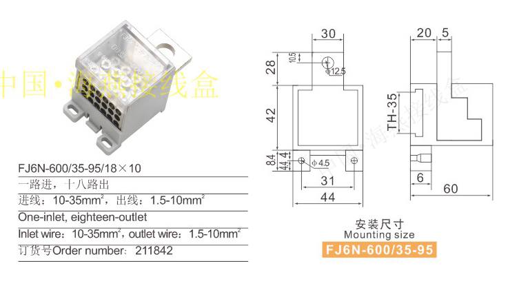 產(chǎn)品分類:FJ6N- 600/35-95系列零線端子253
