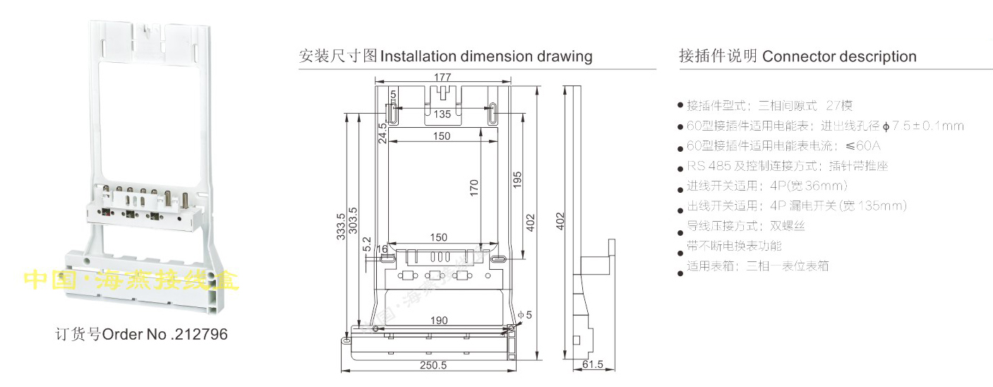 英文名稱:Three-phase gap type electric energy meter connector (integrated)