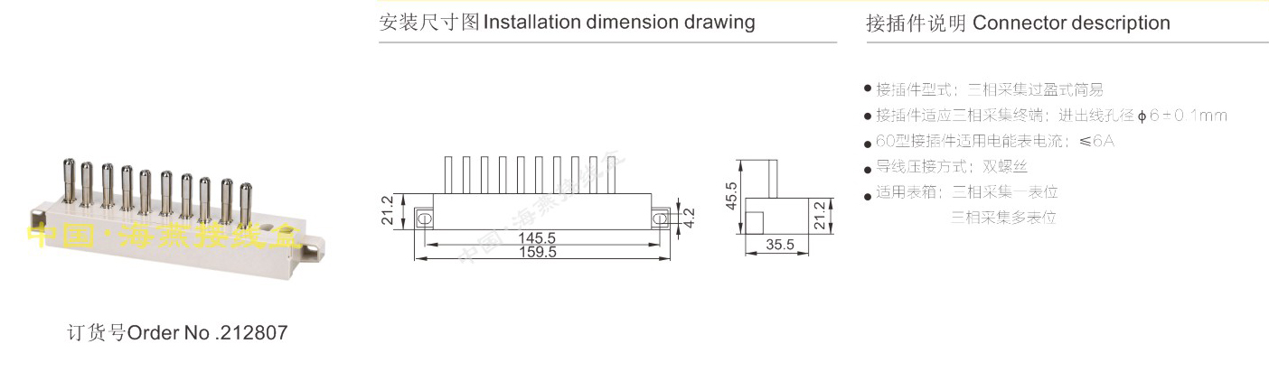 英文名稱:Three-phase acquisition terminal interference type simple electric energy meter connector